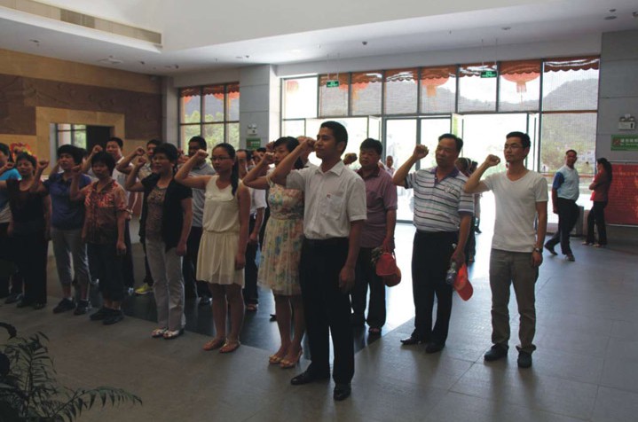 2013年7月4日,我司黨支部組織黨員共20人赴梅州市葉劍英故居重溫紅色歷史,增強(qiáng)黨性修養(yǎng)。在葉劍英元帥紀(jì)念館大堂內(nèi),全體黨員面向黨旗,高舉右手,重溫入黨誓詞。