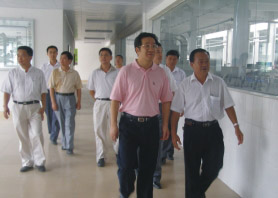 2008年7月29日上午,河源市委常委、宣傳部部長吳善平同志在市縣相關領導的陪同下到我司視察。董事長朱日楊先生向吳常委等介紹了新廠建設情況和發展規劃,吳常委參觀了我司現代化的生產車間后表示贊嘆,對我司轉制三年來取得的可喜變化表示肯定,并鼓勵我司繼續發揚艱苦創業的精神,為河源經濟、社會發展做出更大的貢獻。